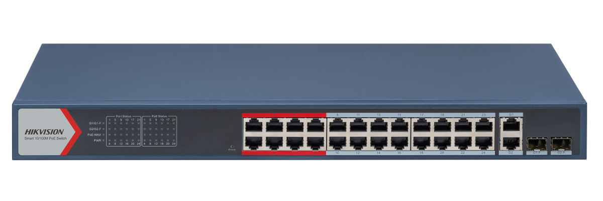 SWITCH (สวิตซ์) HIKVISION 24 Port Smart POE Switch, 24 × 10/100M PoE ports, 2 × Gigabit combos (รับประกัน 3ปี)
