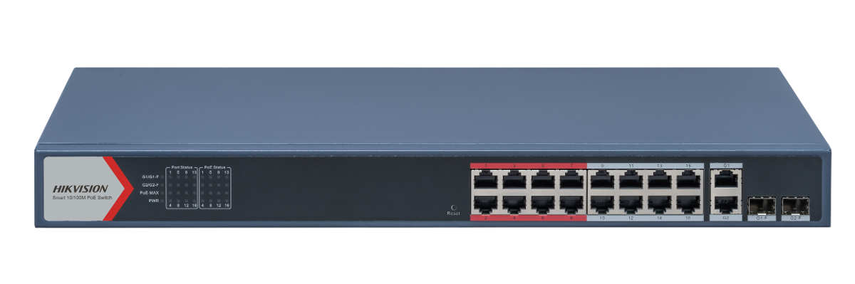 SWITCH (สวิตซ์) HIKVISION DS-3E1318P-EI 16 Port Smart POE Switch, 16 × 10/100 Mbps PoE ports, 2 × Gigabit combos (รับประกัน 3ปี)