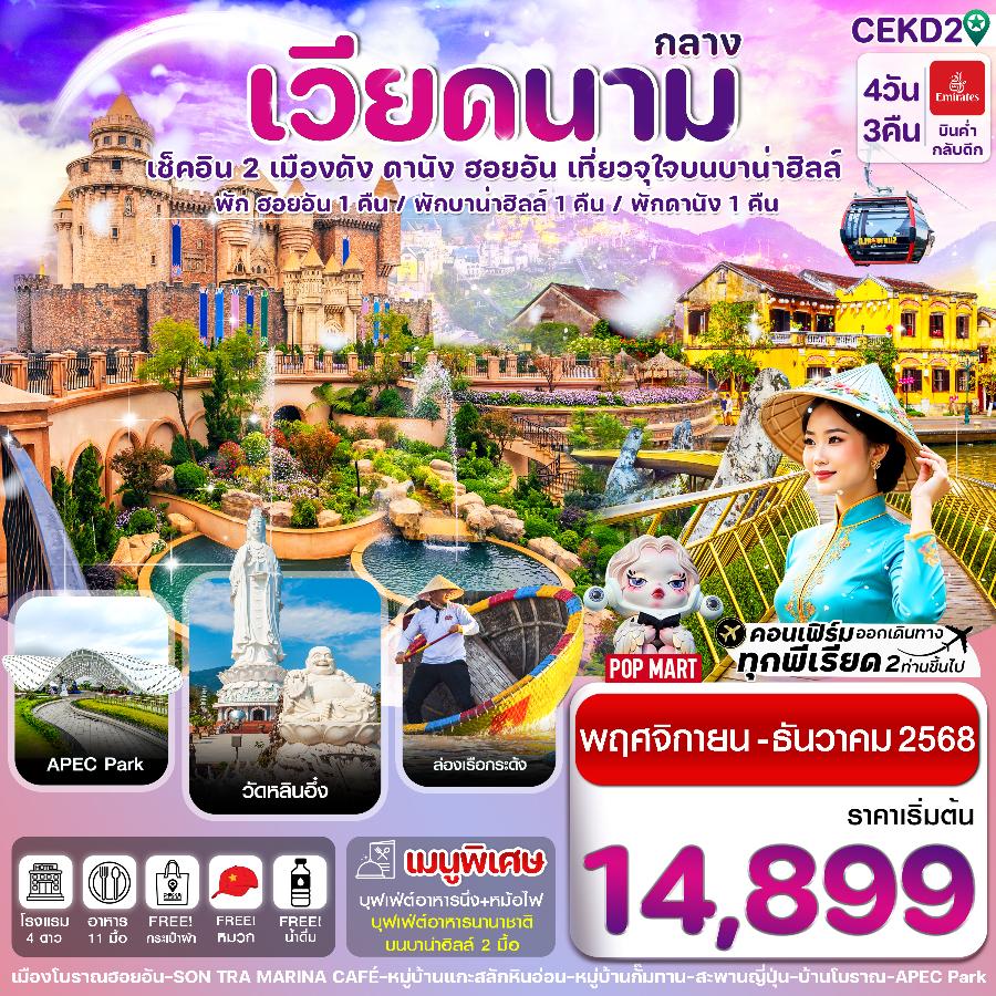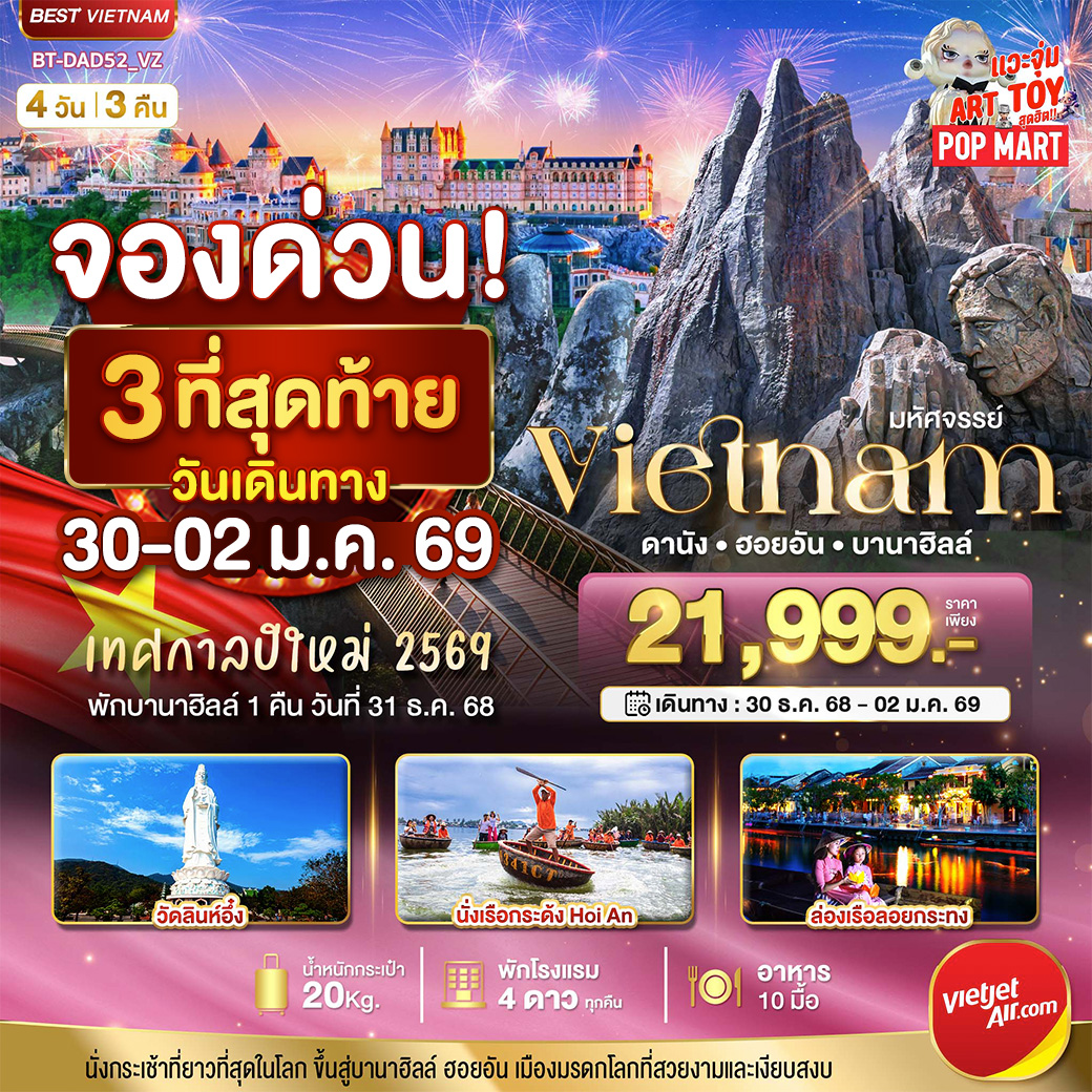 | DADVN03251214 | 14 ธ.ค. - 17 ธ.ค. | อา. - พ. | 11 | 9,888 8,888 | จอง |