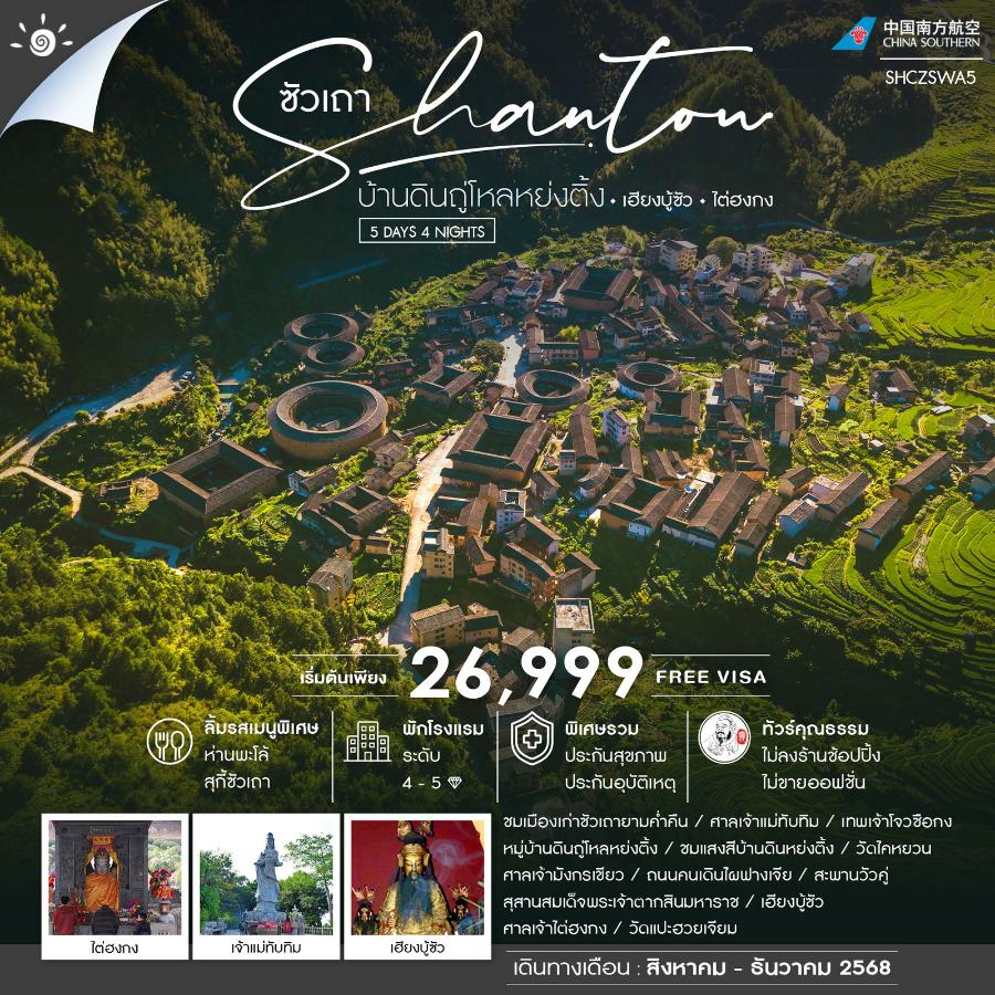 | 16 ธ.ค. 68 - 20 ธ.ค. 68 | 16 ธ.ค. - 20 ธ.ค. | อ. - ส. | 19 | 26,999 | จอง |
