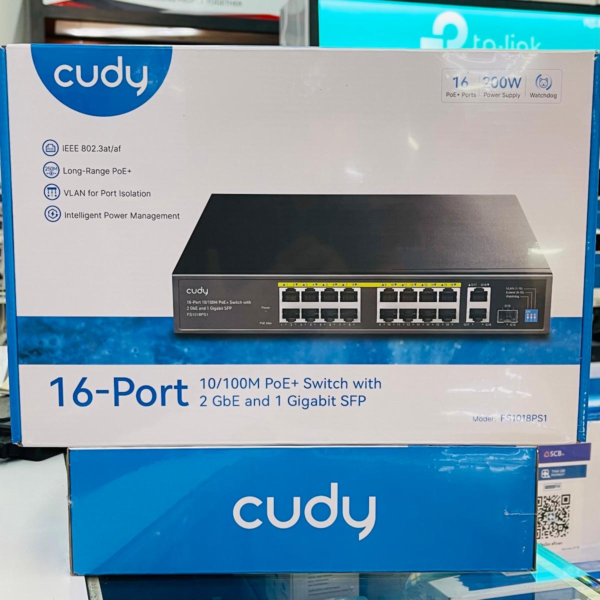 Cudy FS1018PS1 เป็น สวิตช์ PoE+ แบบไม่มีการจัดการขนาด 18 พอร์ต ที่ออกแบบมาสำหรับระบบกล้องวงจรปิดและเครือข่ายอีเทอร์เน็ตขนาดเล็ก โดยมี 16 พอร์ต Fast Ethernet PoE+ พร้อมพอร์ตอัปลิงค์ Gigabit 2 พอร์ตและสล็อต SFP 1 พอร์ต