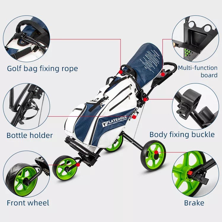 สนับสนุนแขนล็อคกระเป๋ากอล์ฟ สามล้อเบรคขนาดกะทัดรัด