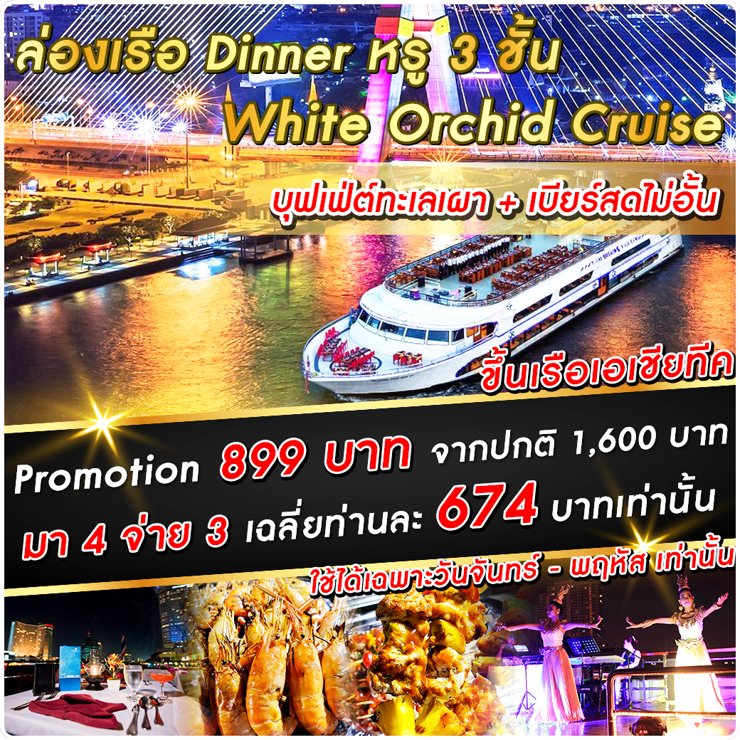 18.00 – 19.00 น. | ลงทะเบียน ณ เคาน์เตอร์ White Orchid Cruise ท่าเรือเอเชียทีค เดอะริเวอร์ฟร้อนท์ |