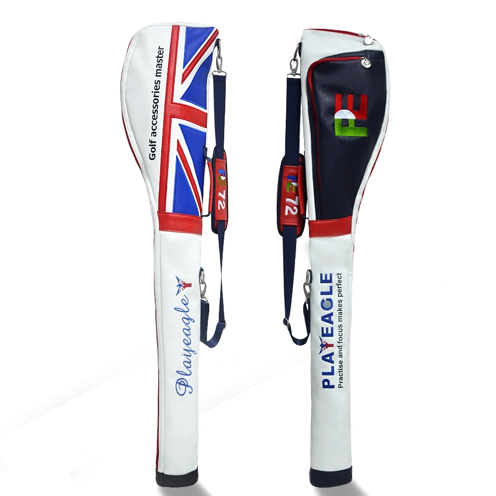 HALF SET PGM QIAB024 แบบมีขาตั้ง ออกแบบดีไซด์สวยมากๆ ช่องใส่ไม้กอล์ฟขนาดใหญ่ ใช้งานได้ง่าย และสะดวกมีมือจับสำหรับยก สามารถใส่ไม้ได้ถึง 6-7 ชิ้น ขนาด: ความสูง: 124ซม./กว้าง: 23ซม./กว้าง: 19ซม. สี: สีน้ำเงินเข้ม, สีแดง, สีเทา, สีดำ วัสดุคุณภาพ: ผ้าไนล