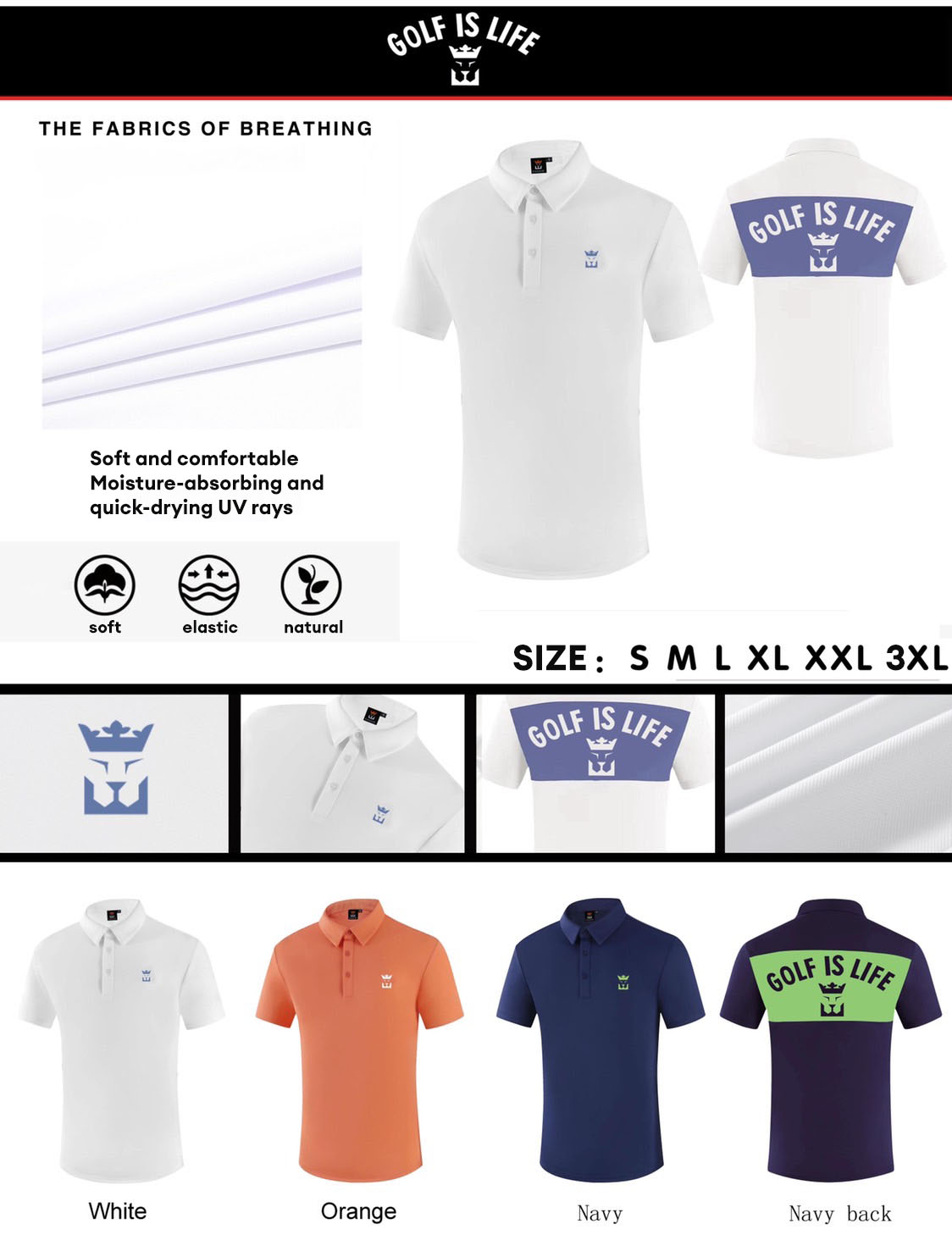 เสื้อนักกอล์ฟ แขนสั้น ผู้ชาย สำหรับกีฬากอล์ฟโดยเฉพาะ เนื้อผ้าเบาบาง ใส่สบาย เเห้งเร็ว ไม่ร้อน ระบายอากาศได้ดี ประกอบด้วยไซด์ S M L XL XXL