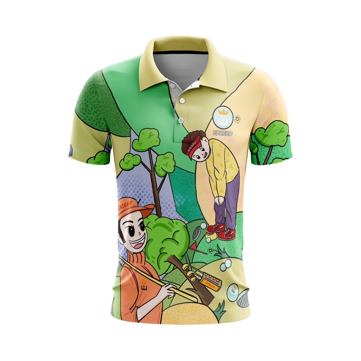 เสื้อกอล์ฟแขนสั้น เสื้อยืดคอปกลายการ์ตูน Exceed ลาย : การ์ตูน Exceed สีเขียว สีเขียว มีไซส์ S-3XL (YFE003) golf shirt comfortable to wear ลาย : การ์ตูน Exceed สีเขียว ไซส์ผู้ใหญ่ : S/M/L/XL/XXL/XXXL