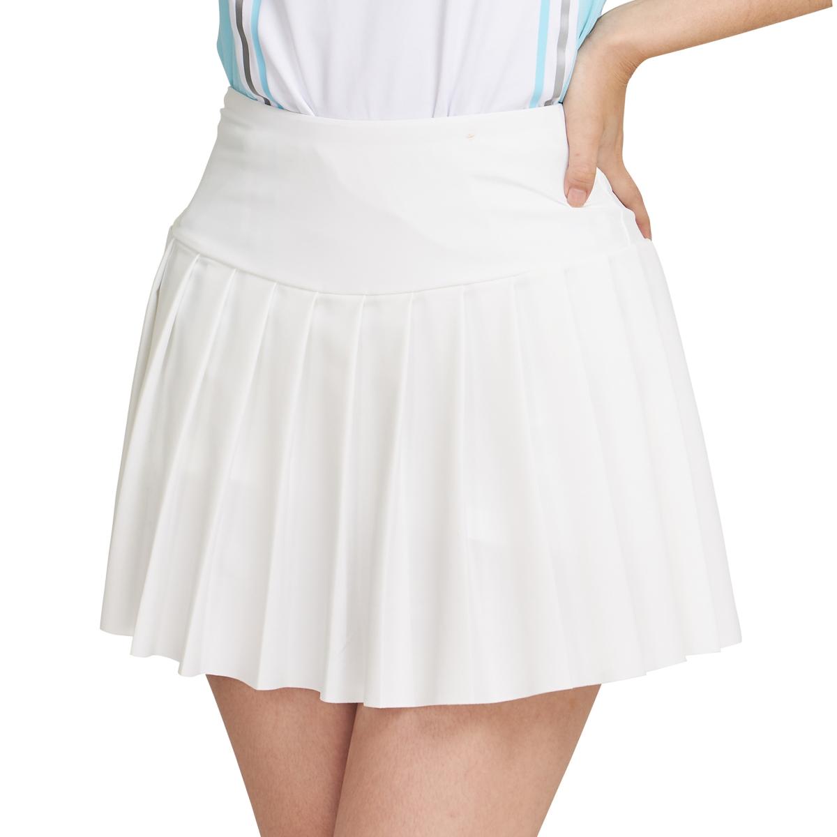 กระโปรงกอล์ฟ Women's white pleated golf skirt มีกางเกงซับใน ผลิตภัณฑ์: กระโปรงกอล์ฟ สีขาว ● แบรนด์: EXCEED สี: สีขาว Material: outer:82% Polyester 18% Spandex Inner: 95%cotton 5%spandex High elastic waist
