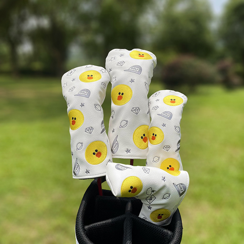 Head Cover Cute cartoon pattern COVER หัวไม้กอล์ฟ 1-3-5-ut-Putter หนัง PU คุณภาพดี ภายในบุกำมะหยี่ PUวัสดุดีกันน้ำ
