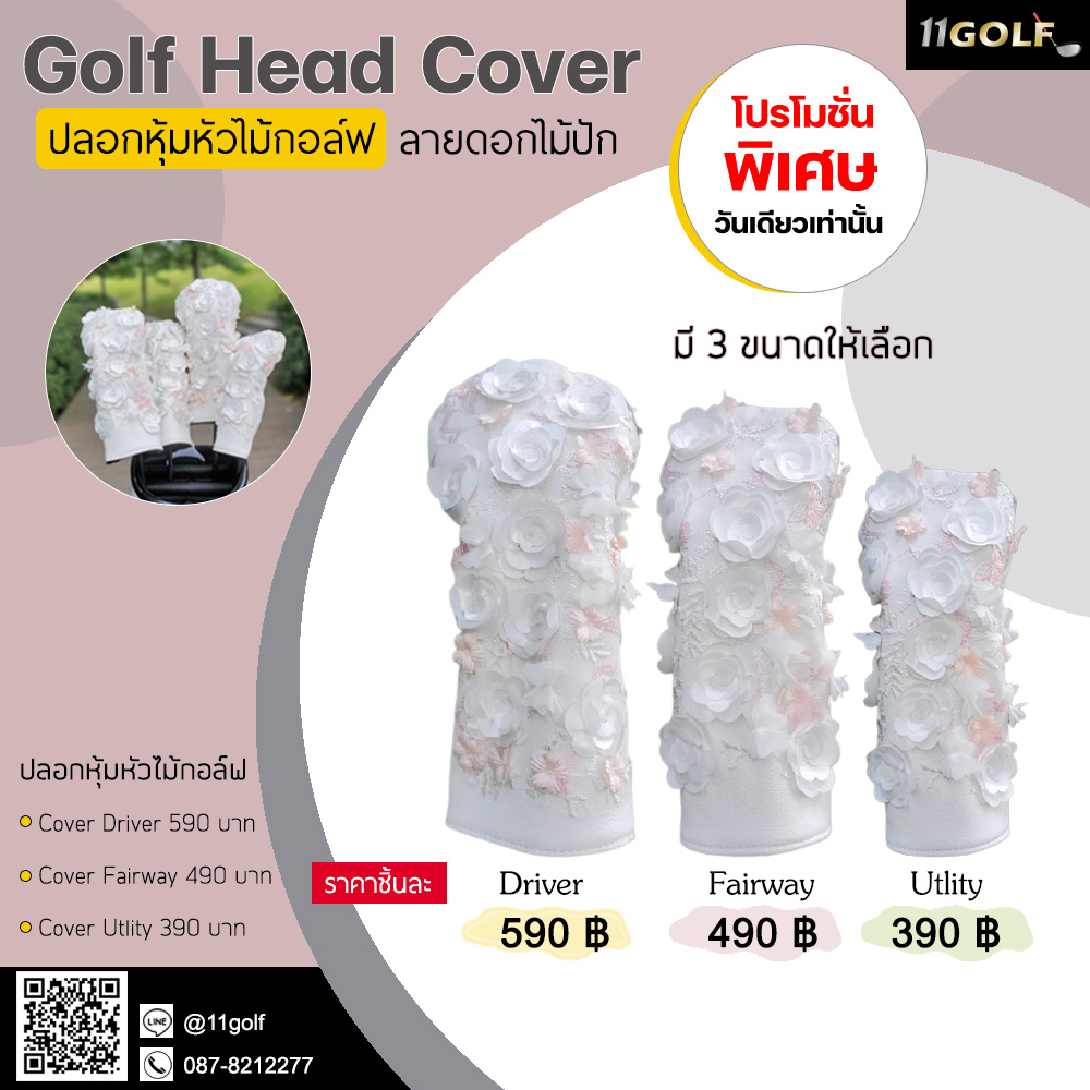 รหัสสิค้า MT-U001 ไม้กอล์ฟพรีเมี่ยม!!! ราคาถูกที่สุดในประเทศไทย!!! HEAD COVER WHITE FLOWER PATTERN