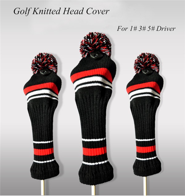 Headcovers (1,#3,#5) ถักสไตล์ถุงเท้าคอยาว หัวหน้าครอบคลุมสำหรับไดร์เวอร์Fairway Pom Pom วัตถุดิบหลักของผ้าคลุมหัวไม้แบบถัก ลายมี ความแตกต่างระหว่างสีดำเเดงสลับเป็นเส้นขวาง สีสดใส และมันกระชับชุดตามแฟชั่น ซึ่งมีแฟนๆ ที่ชื่นชอบมากมายเป็นที่รู้จักกันดีในเรื