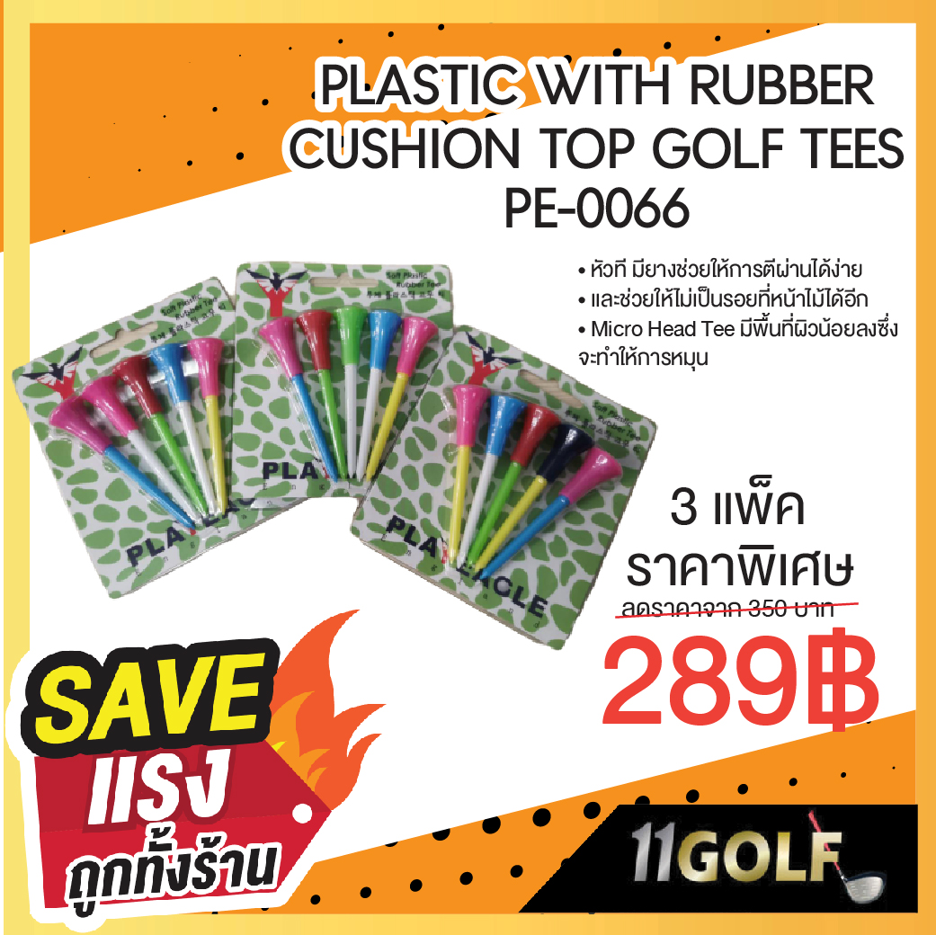 Plastic with Rubber Cushion Top Golf Tees PE-0066 หัวทีมียางช่วยให้การตีผ่านได้ง่าย เเละช่วยให้ไม่เป็นรอยที่หน้าไม้ได้อีก ของแท้ต้องที่ร้าน 11GOLF เท่านั้น