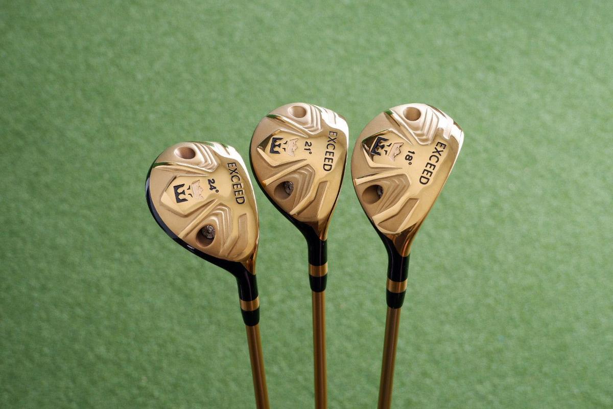 HYBRID EXCEED GOLD หัวไม้ที่ตีง่ายที่สุด เหมาะสำหรับนักกอล์ฟที่ตีเหล็กยาวไม่ได้ระยะ U3 18 องศา จะได้ระยะประมาณ 190-200 หลา U4 21 องศา จะได้ระยะประมาณ 180-190 หลา U5 24 องศา จะได้ระยะประมาณ 170-180 หลา หัวไม้ไฮบริดรุ่นใหม่ล่าสุดของ HYBRID EXCEED GOLD