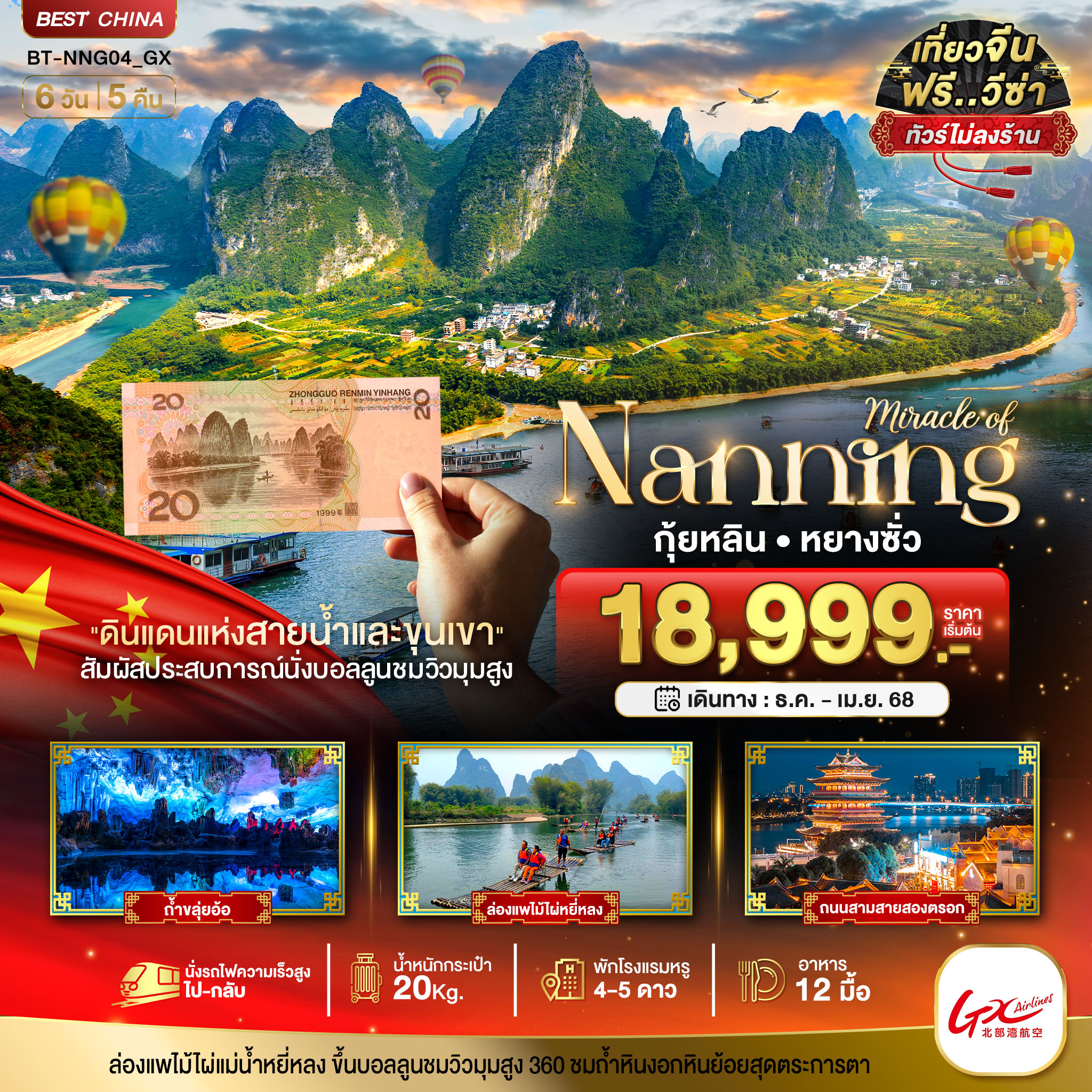 | ze-080226120226 | 08 ก.พ. - 12 ก.พ. | อา. - พฤ. | 30 | 18,990 | จอง |