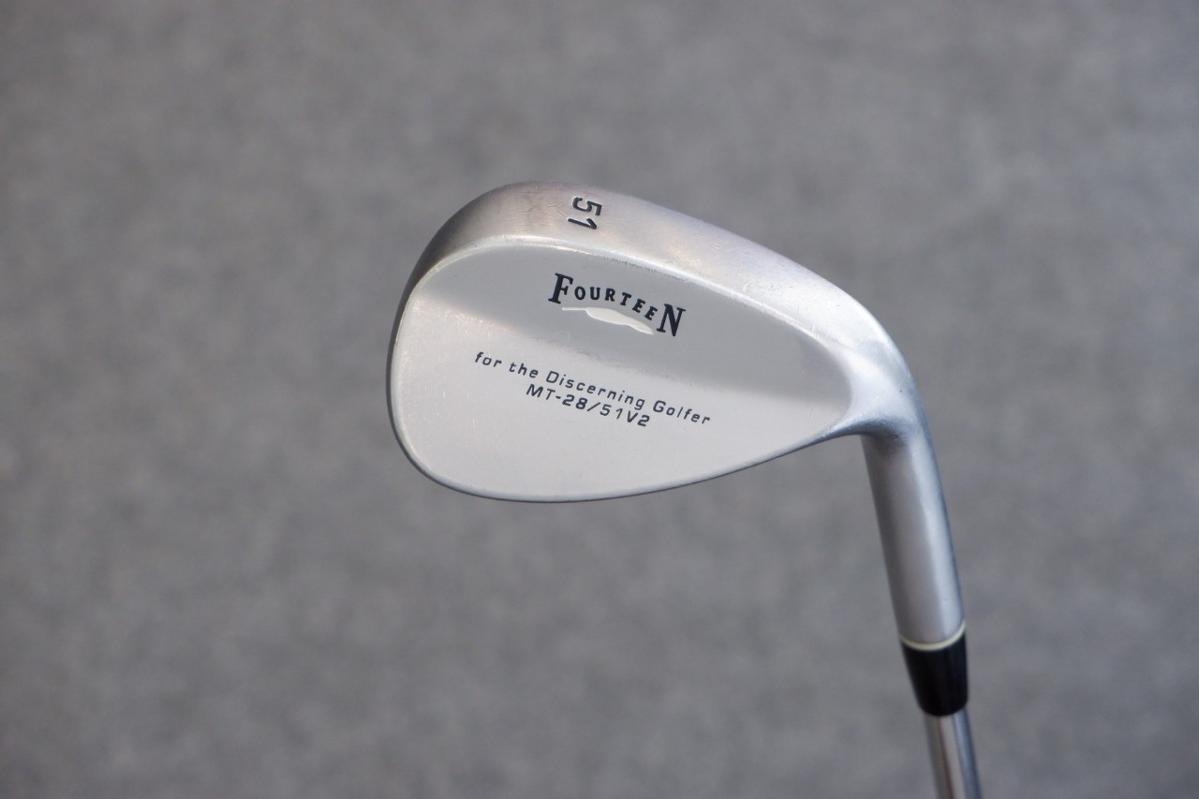 WEDGE FOUR TEEN MT-28 สภาพหน้าไม้สวยล่องลึก LOFT 51 WEDGE รุ่นนี้จะมีสนิมขึ้นทำให้สปินเยอะเเน่นอน ก้านTRUE TEMPER DYNAMIC GOLD S200 เวดจ์ตัวมาจากค่ายโฟร์ทีนแดนปลาดิบ ดีไซน์ร่องหน้าเวดจ์แบบใหม่ที่ตื้นขึ้นและโค้งมน แบรนด์นี้เคยผลิตมา ส่งผลให้ลูกกอล์ฟเกาะก