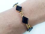 สร้อยข้อมือทอง90 นิล เจียรทรงข้าวหลามตัด 1.1 * 1.6 ซม. เกาะ 4 เตย โซ่ คู่
