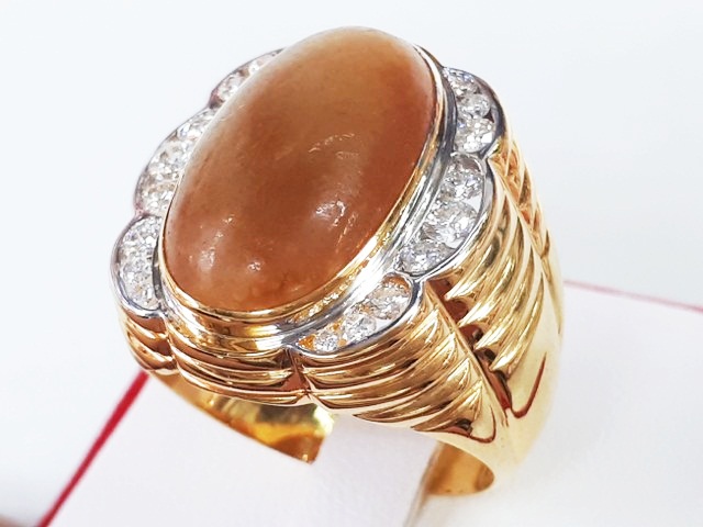 แหวนเพชรหลุดจำนำ ทอง90 หยกสีน้ำผึ้ง 1.2 x 1.8 ซม.