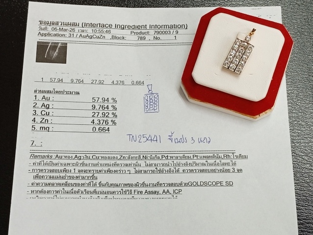 จี้เพชร3แถว ทอง 57.9 % เพชรแท้ธรรมชาตื
