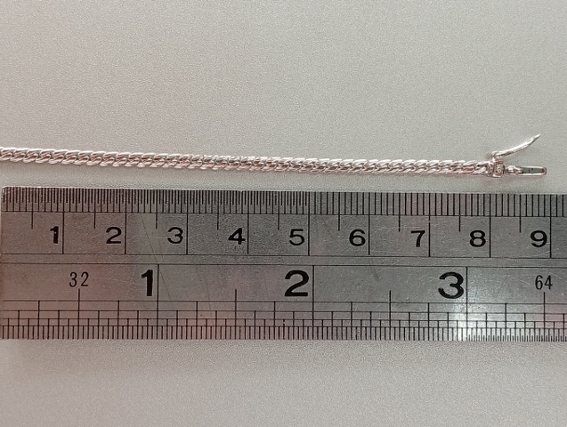น้ำหนักรวม 13.7 กรัม ที่ล็อก 0.9 ซม. สร้อยยาว 40 ซม. ( 16 นิ้ว )