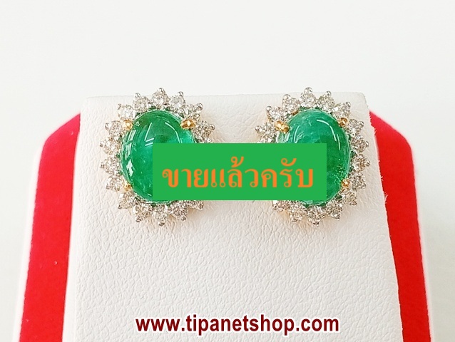 ต่างหูมรกตล้อมเพชร เรือนทอง 76% (18K)