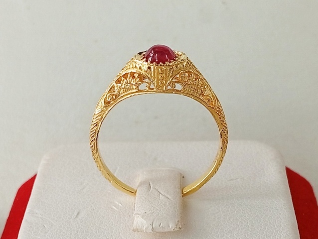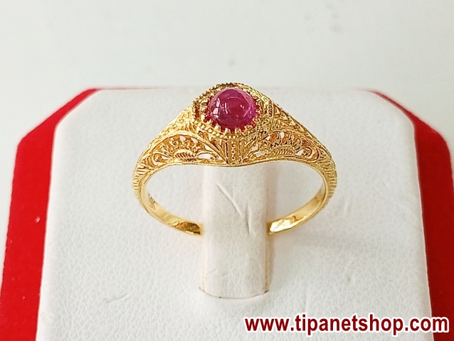 ตรงกลาง พลอย ทับทิม ทรงหลังเบี้ย 4 มิล เกาะเตยแบบโบราณ