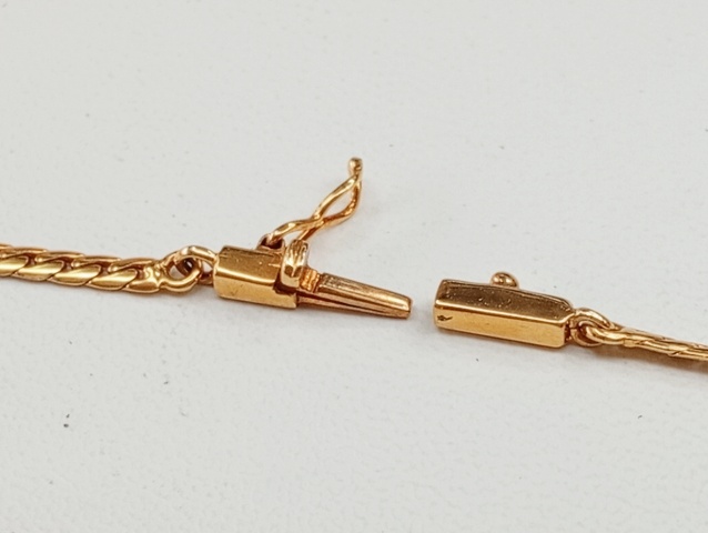 น้ำหนักรวม 13.2 กรัม ที่ล็อกมีหนวดกุ้ง แข็งแรง สายสร้อยหนา ยาวรวม 42 ซม (17นิ้ว)
