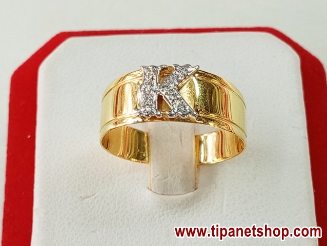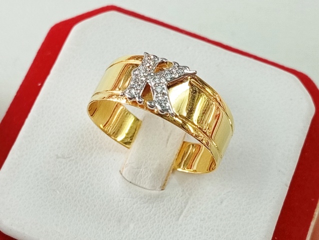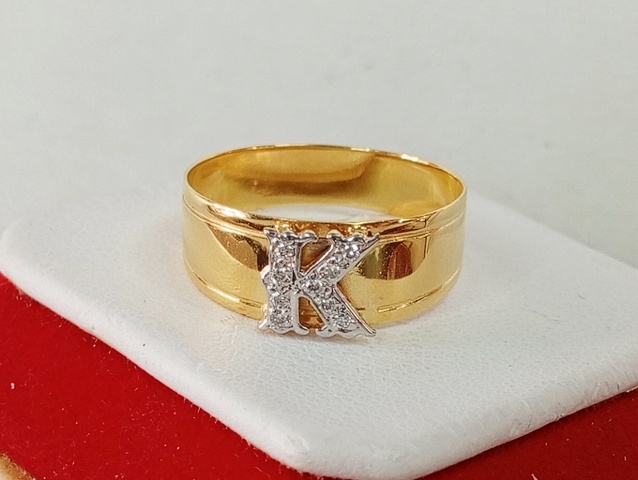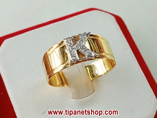 แหวนตัวอักษร เค สไตล์ โรมัน ประดับ เพชรเกสร บน อักษร เค
