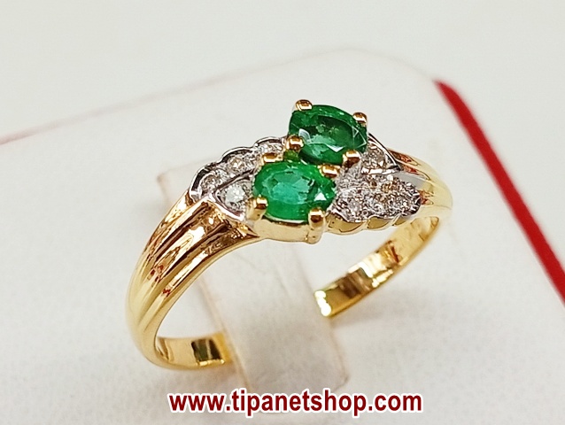 แหวนมรกตบ่าเพชร | ทองแท้ 18K | เพชรแท้ธรรมชาติ