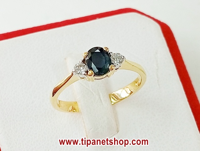 แหวนไพลินบ่าเพชร | ทองแท้ 18K | เพชรแท้ธรรมชาติ
