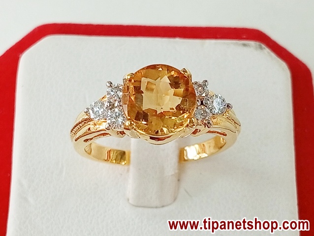 แหวนซิทรีนบ่าเพชร | ทอง18K | เพชรแท้ธรรมชาติ