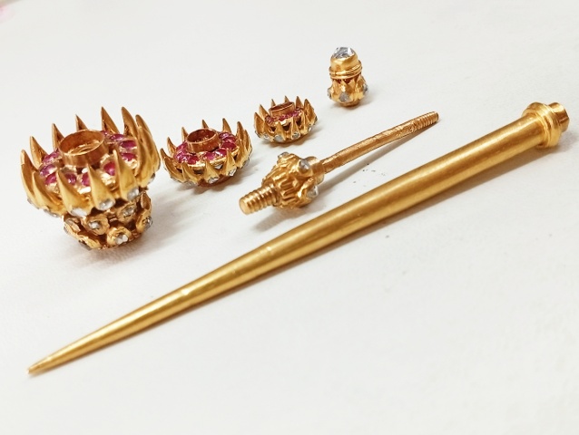 ปิ่นปักผมทรงโบราณ | ทอง 94% | เพชรซีก ธรรมชาติ