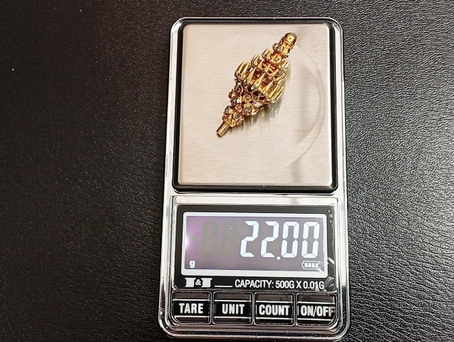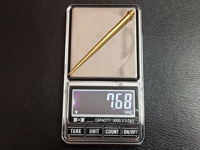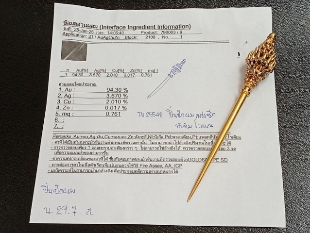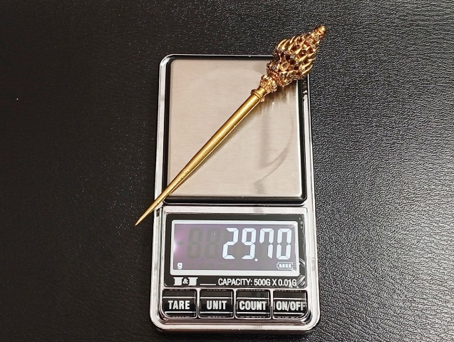น้ำหนักรวม 29.7 กรัม. ยาว 11.5 ซม.