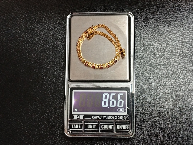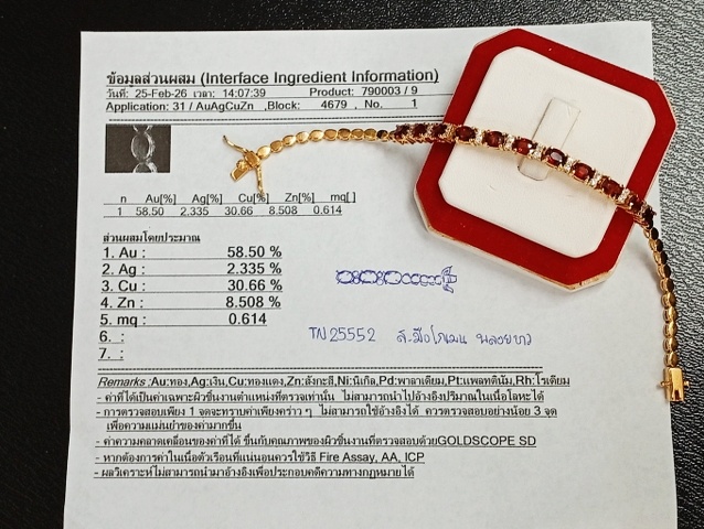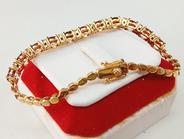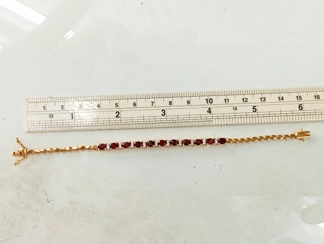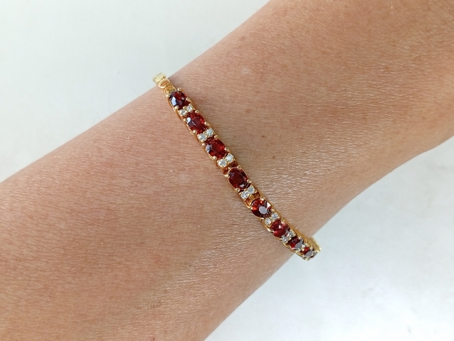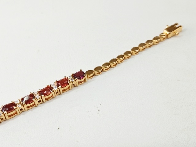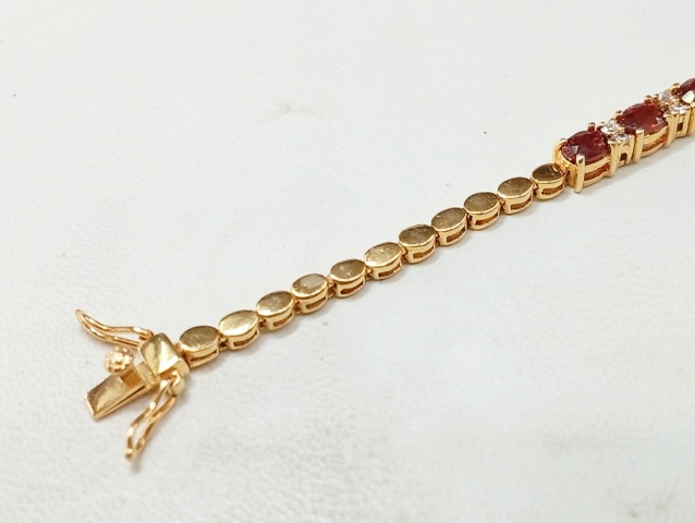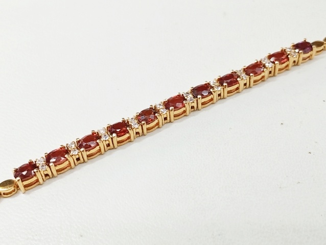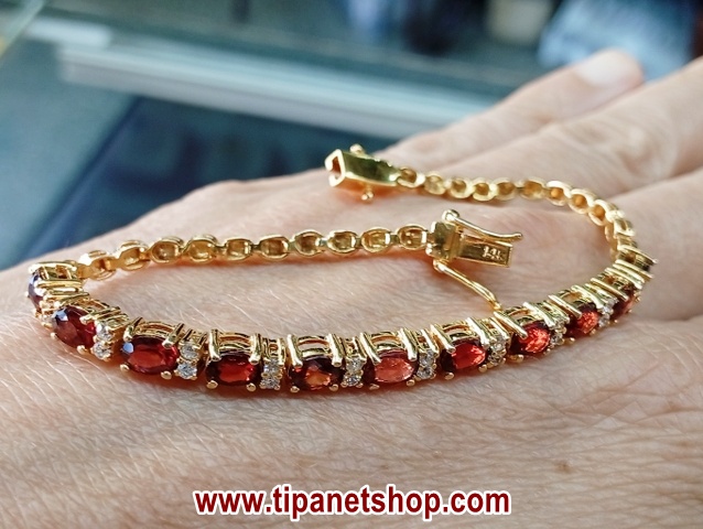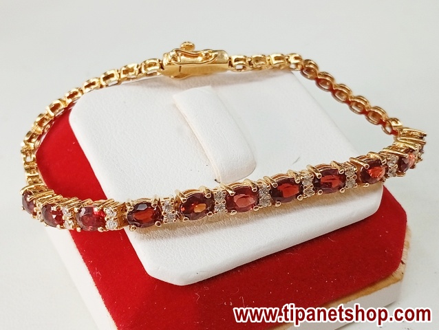 สร้อยข้อมือ พลอย โกเมน และ พลอยขาว | ทอง 58% | โกเมนเจียรรูปไข่