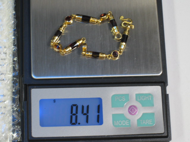 สร้อยข้อมือ ทอง90% หุ้ม โกเมน เจียร 11 เม็ด ทรงกลม 5 เม็ด และ เม็ดแตง 6 เม็ด