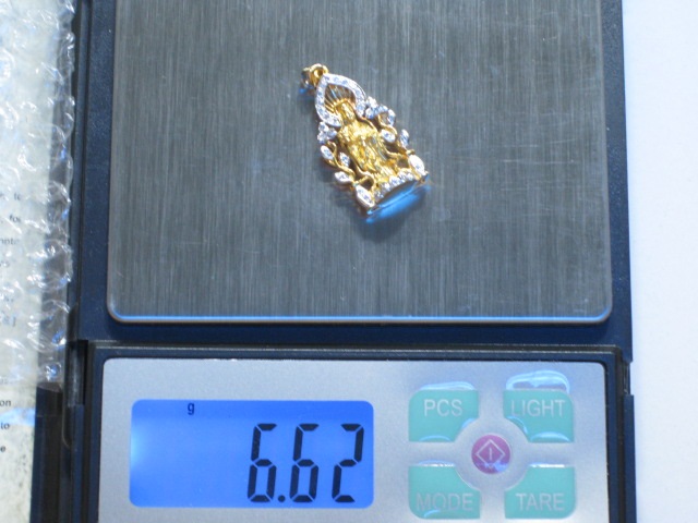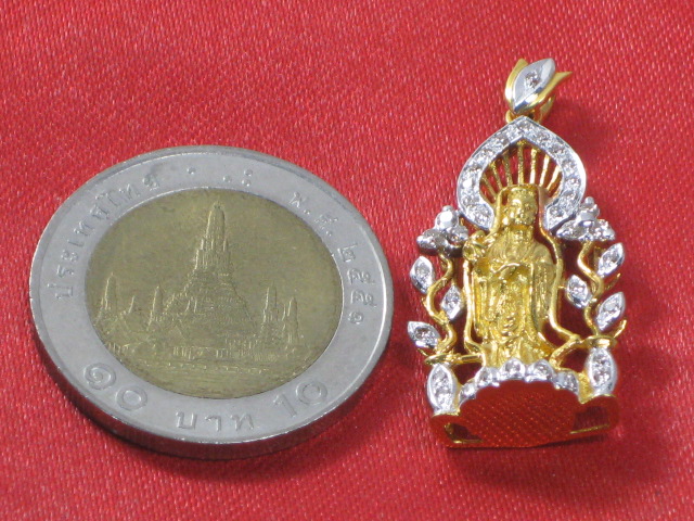 จี้ทอง 90% พระแม่กวงอิม ปางประทานพร ถือ แจกัน ล้อมเพชร