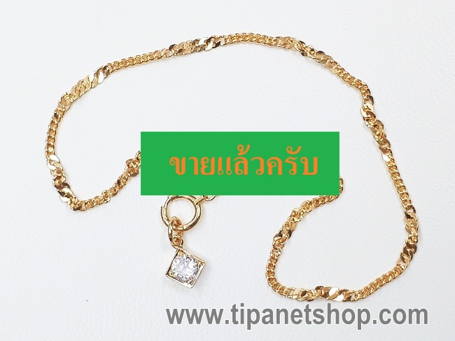 สร้อยข้อมือทอง 18K 750 ลายโซ่ เกลียว มี จี้พลอยขาว 4 มิล 1 เม็ด