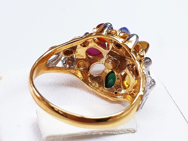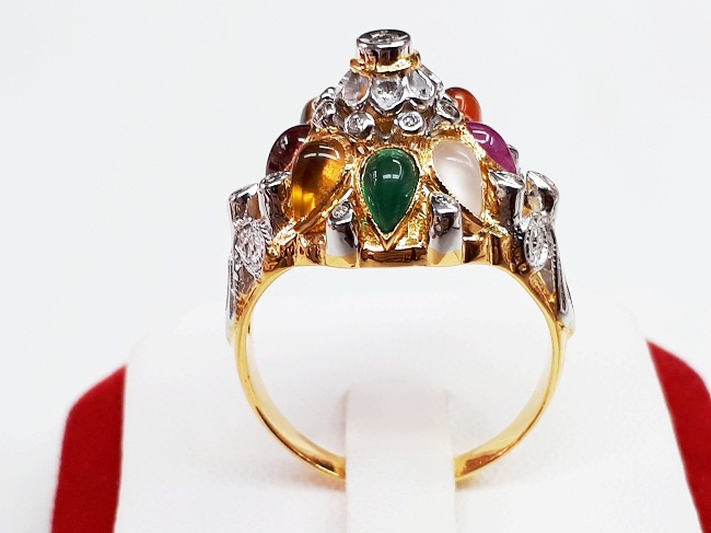 แหวนทอง14K ทรงนพเก้า พลอบต่างๆ รูปหยดน้ำ ฝังหุ้ม
