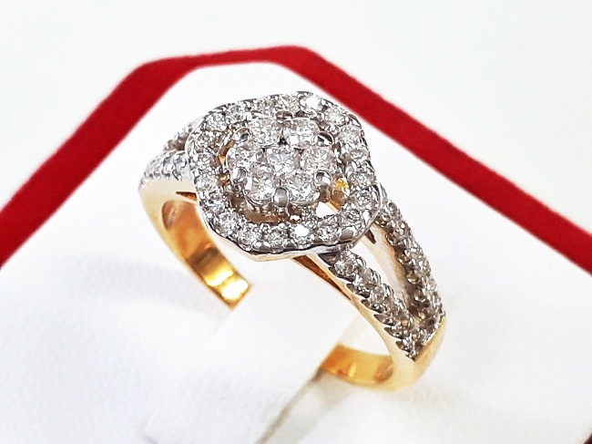 แหวนทอง90 แฟนซี กระจุก เม็ดกลางฝังชิดทำให้ดูเหมือน รวมเม็ดใหญ่ตรงกลาง