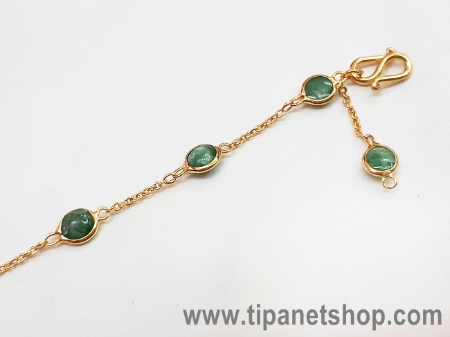 สร้อยข้อมือทอง90 หยก 4 มิลกว่า 11 เม็ด ฝังหุ้มกระเปาะ คั่นโซ่
