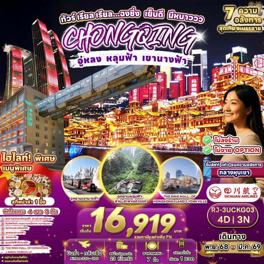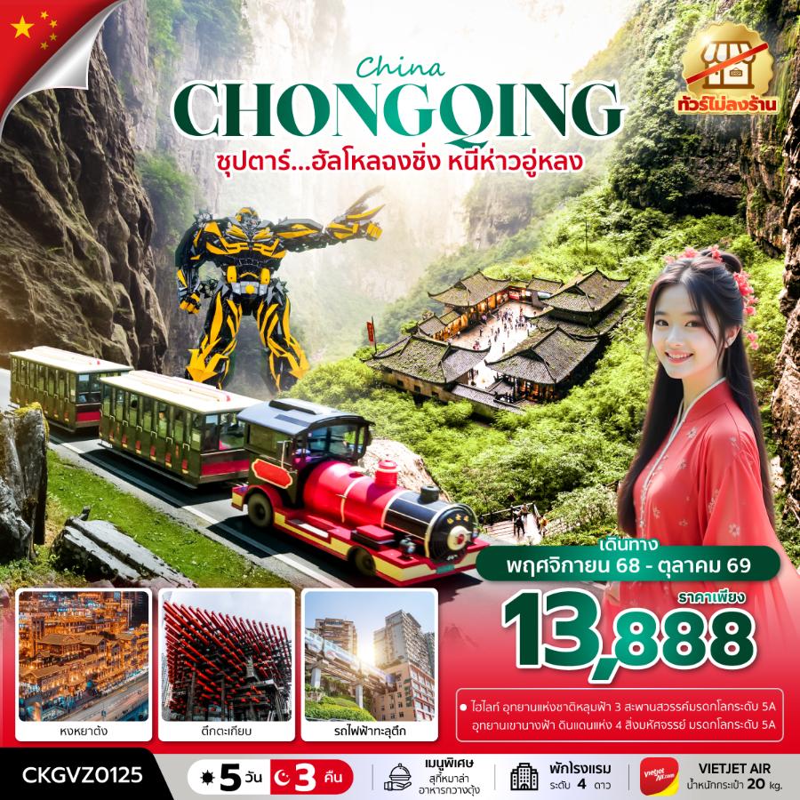 | CKG3U05260125 | 25 ม.ค. - 29 ม.ค. | อา. - พฤ. | 9 | 17,888 | จอง |